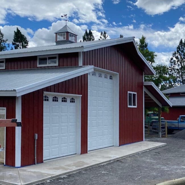 Our post-frame steel buildings are specifically engineered for agricultural use, providing exceptional space for storing farming equipment, hay, and other essential assets. With clear-span capabilities of up to 80 feet wide and no interior support posts, our structures deliver unobstructed, highly functional space. High sidewalls allow for the installation of tall doors, maximizing accessibility and storage capacity.