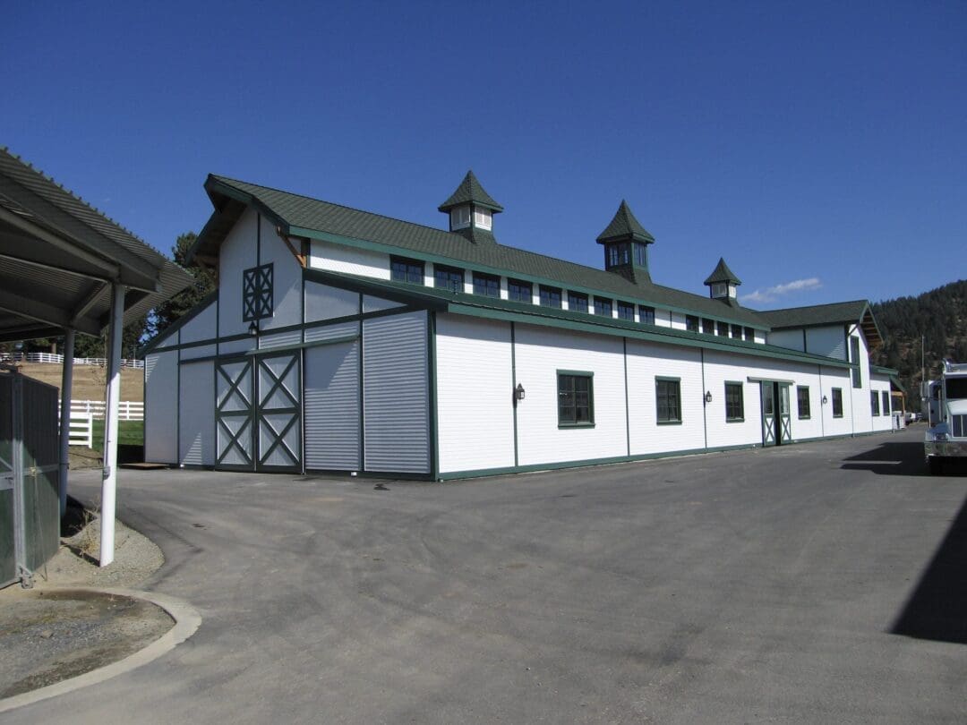 A variety of stall and tack room configurations can also be chosen, with dividers, doors, and galvanized stalls.