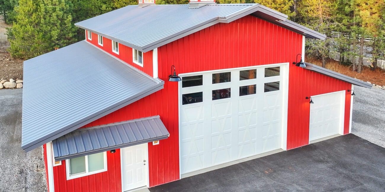 Garages & Shops Horse Barns and Arenas #13852 – 48x48x18 Red Monitor Barn with Metal Siding in Rathdrum, ID Find out more