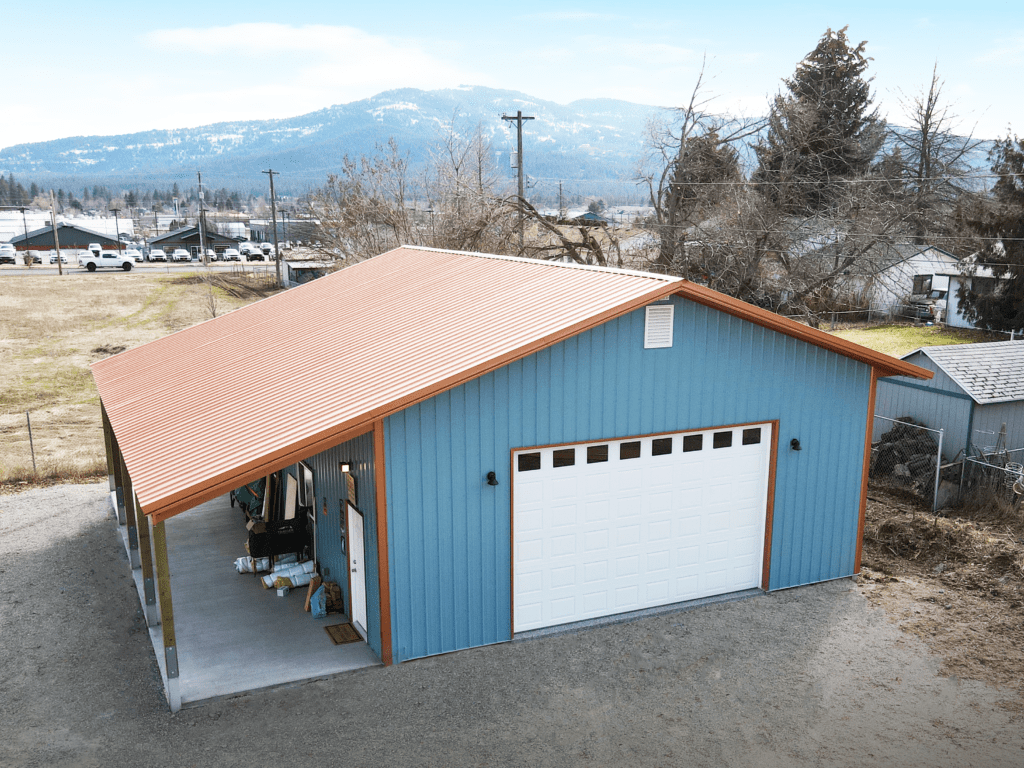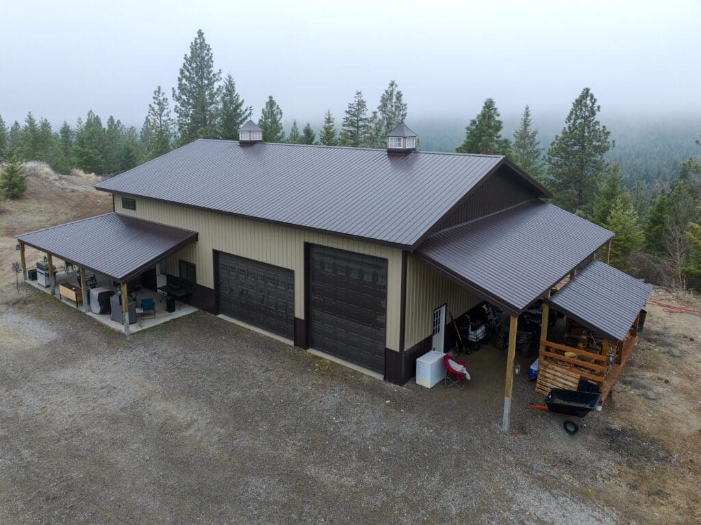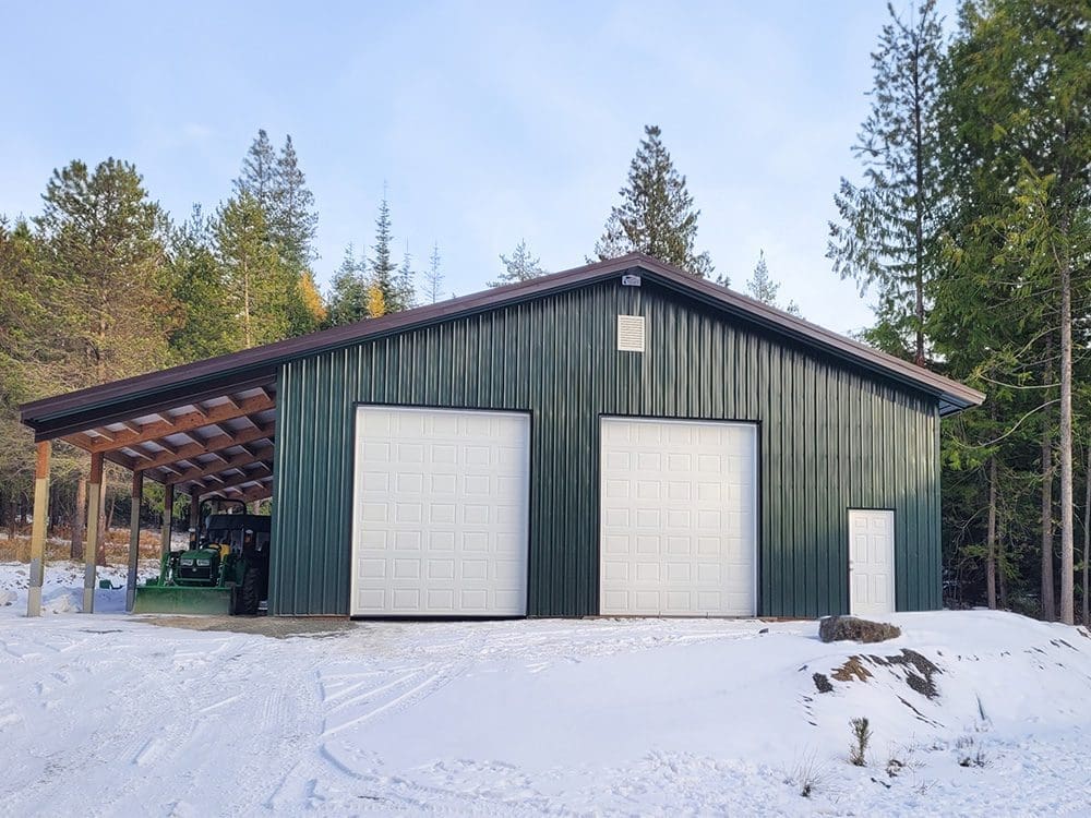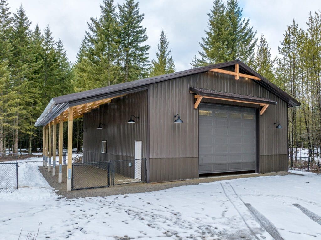 #14190 – 40x60x16 Residential Shop with Open Lean-To and Custom Timber Truss in Bonner County, ID Find out more