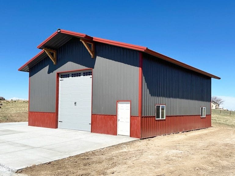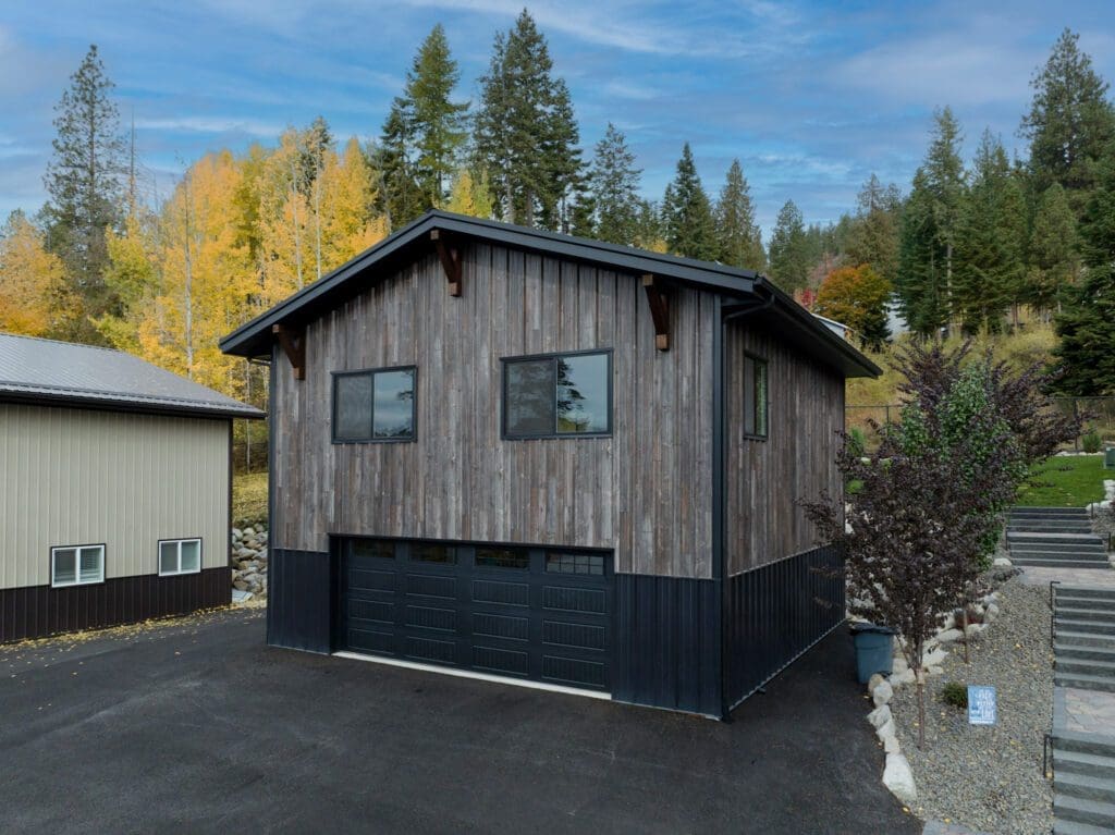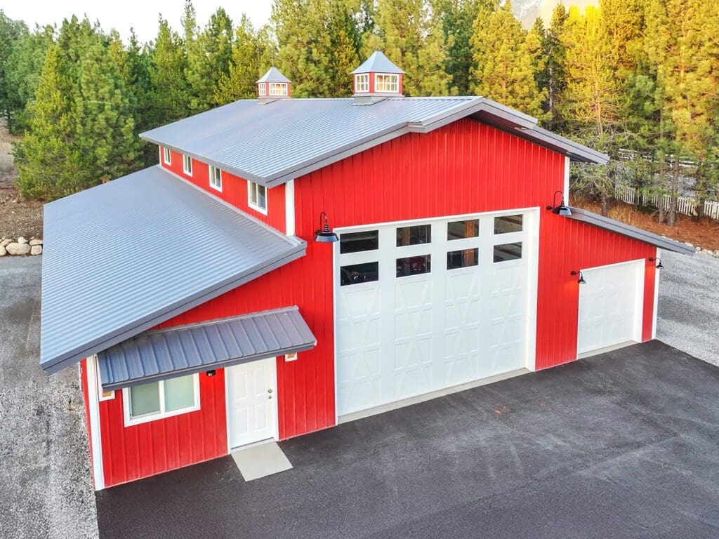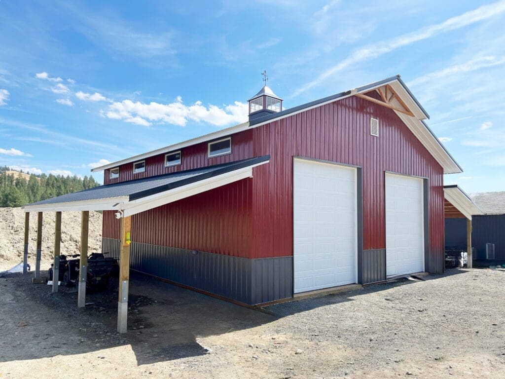 #13233 – 32x48x18 Striking Red and Black Post-Frame Shop with Cedar Details in Colville, WA Find out more