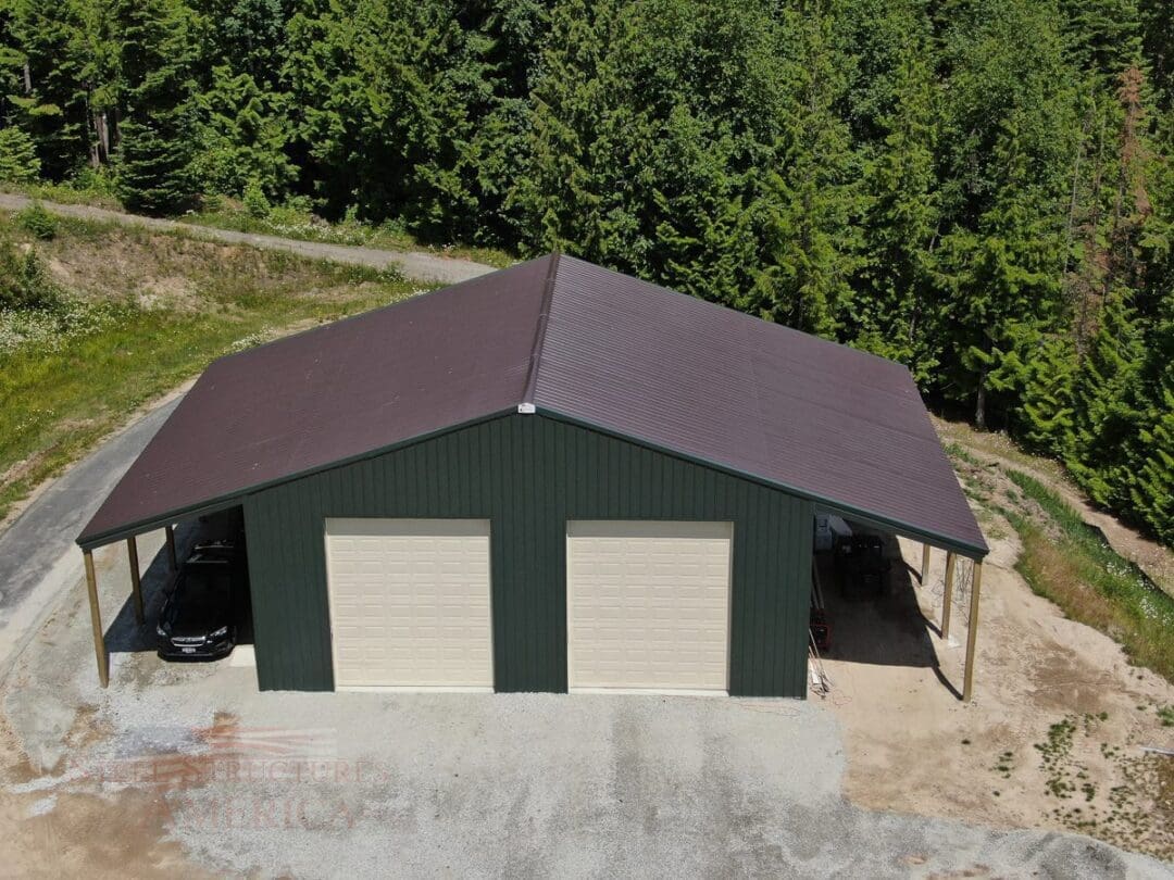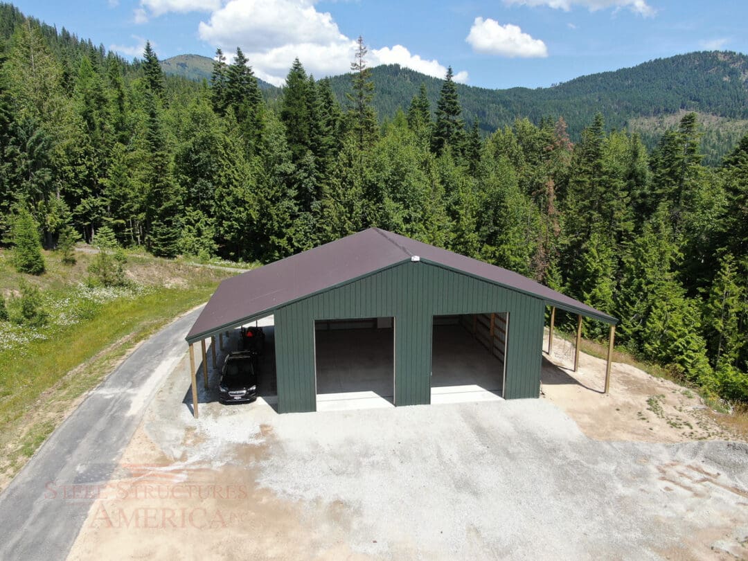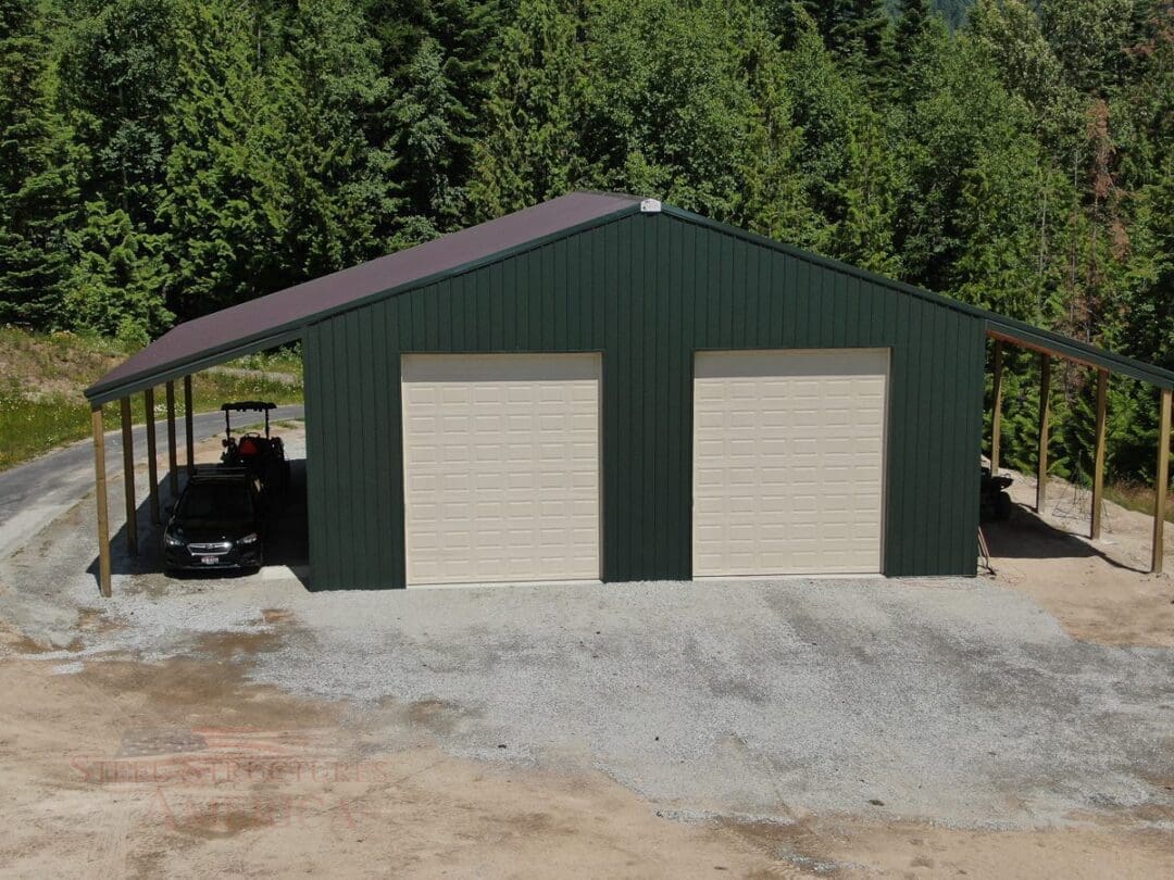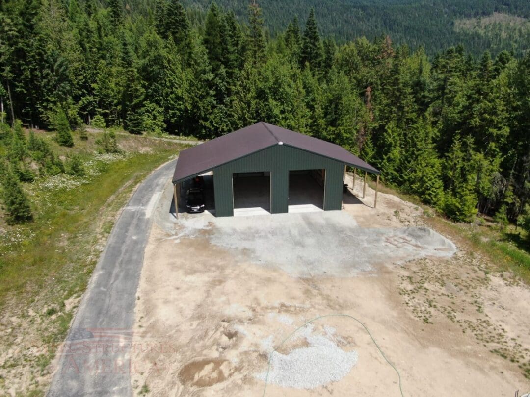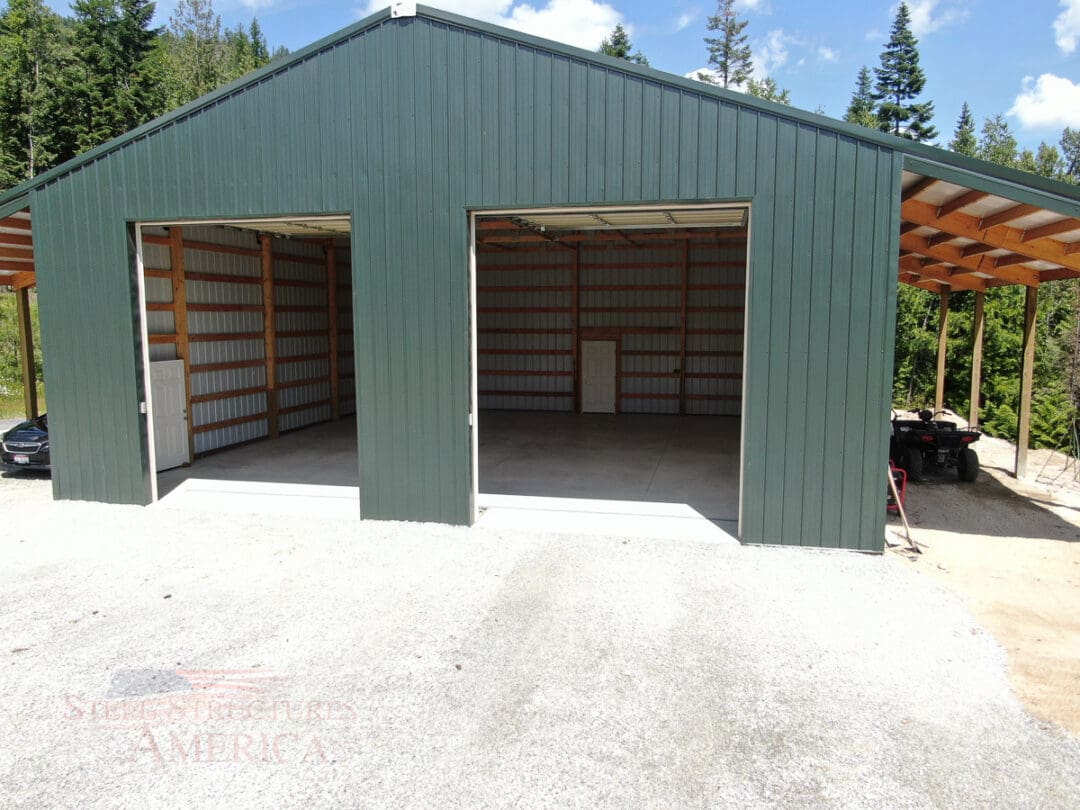 This beautiful 40′ x 40′ shop, located in Sandpoint, ID, is the perfect addition to any property. With its dark green siding and brown roof, this build blends in nicely with the PNW scenery. This pole barn build also comes equipped with dual 12′ x 40′ x 10′ lean-tos for easy storage of large or small equipment and summer toys. Insulated with 2″ MBI, it is perfect for snowy Idaho conditions.