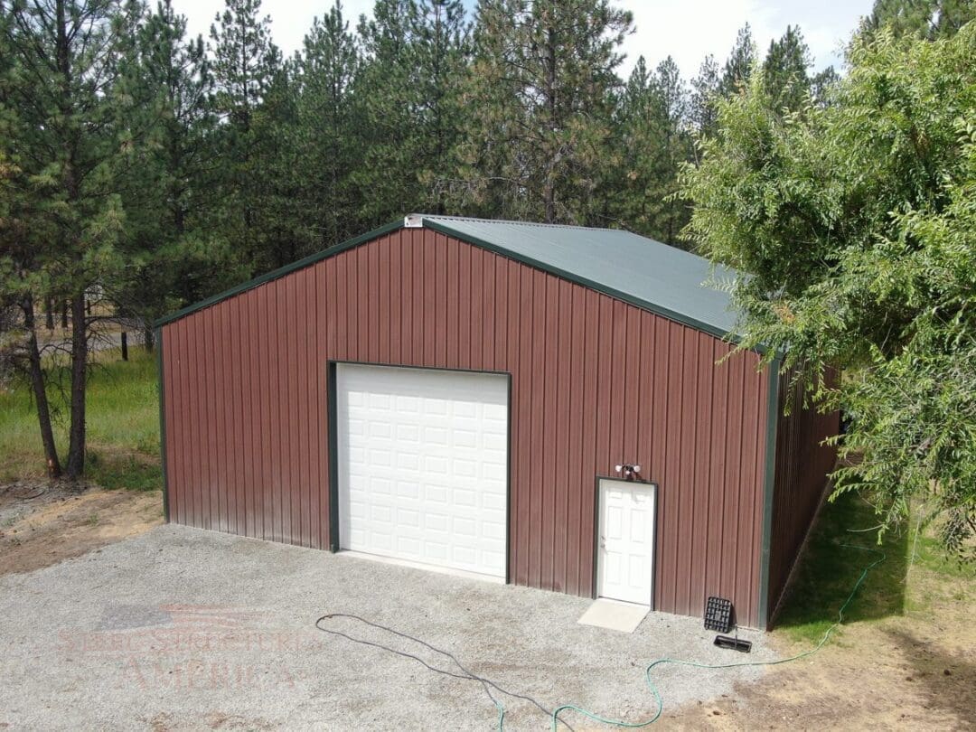 - Main Building: 40′ × 40′ × 14′ with 4/12 gable roof