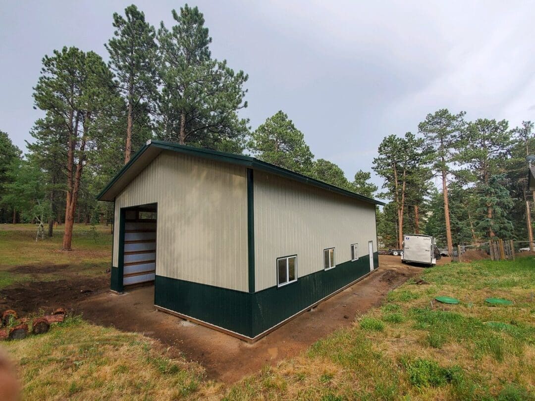 32x48x16 with (3) 12×14 overhead doors, 4′ wainscot, 2′ overhangs and fully insulated roof and walls
