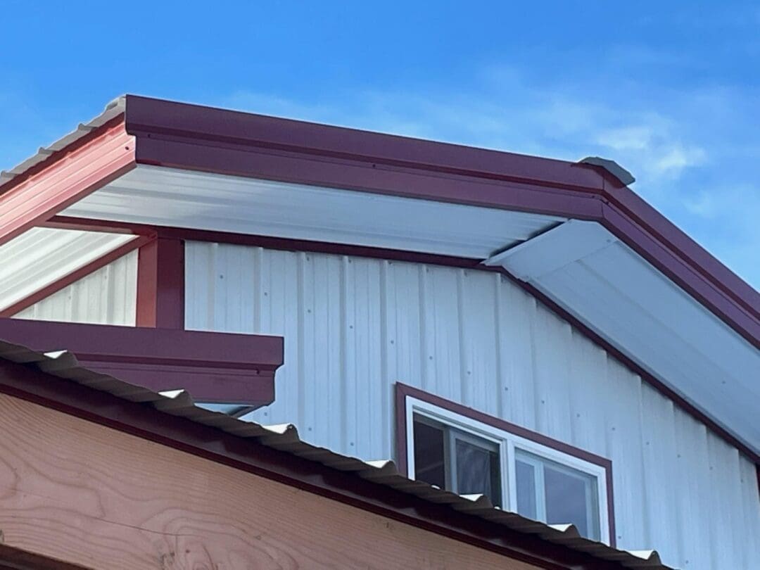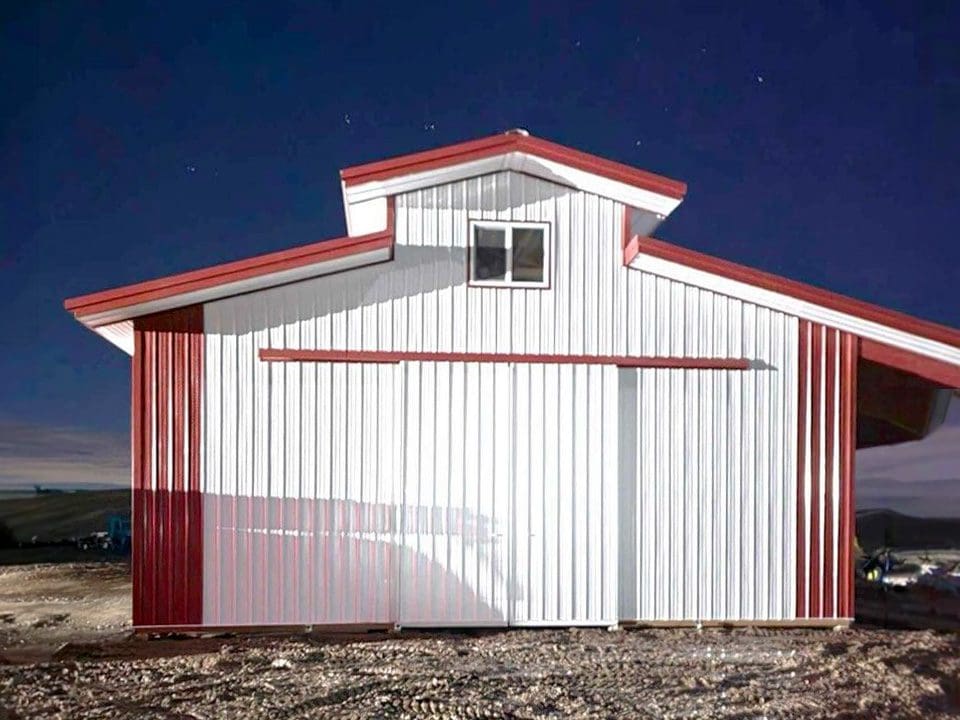 This horse barn was completed in polar white body and roof and with red roof corners accents and trim.