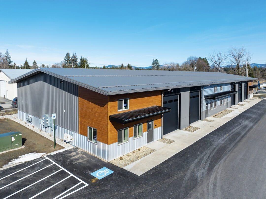 This large commercial steel building in Hayden, Idaho was designed to provide flexible space for multiple tenants. The structure measures 66 feet wide by 180 feet long, with tall 18-foot sidewalls to allow for oversized doors, equipment, or storage. Built with a rigid steel frame, it’s engineered to handle heavy snow loads common in North Idaho.