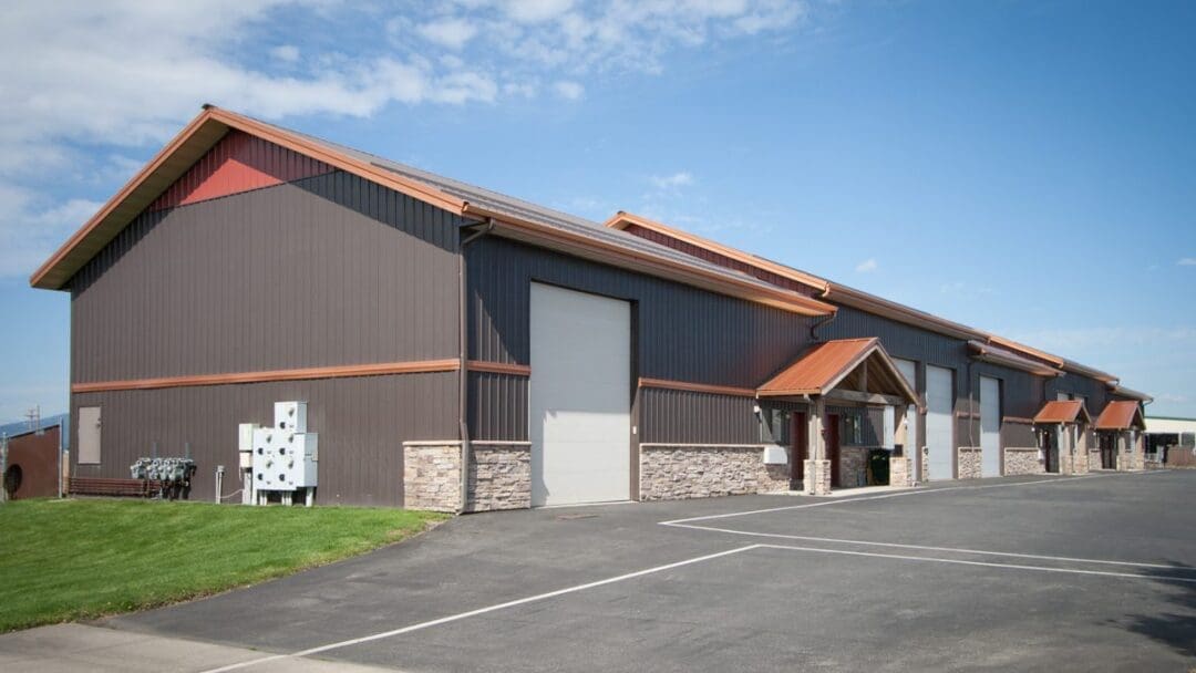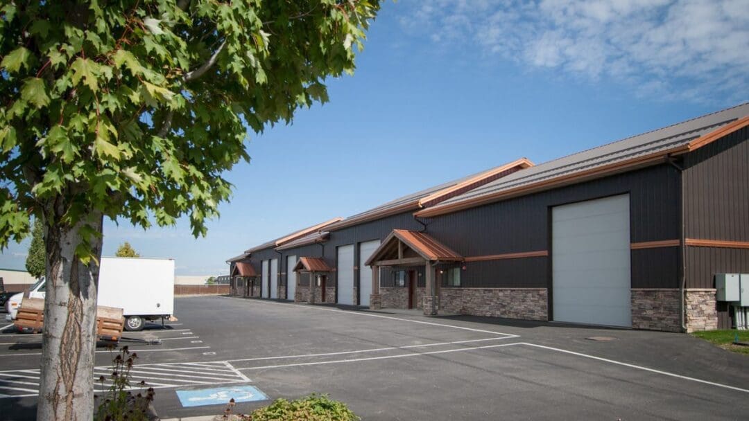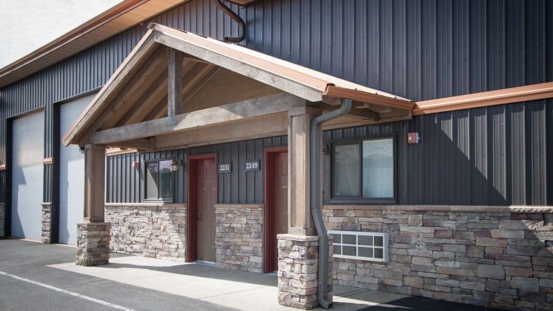 This Condominium project features (5) 2300 sq ft office and warehouse units. The lower level has 300 sq. ft. of office space and 2000 sq. ft. of warehouse space. A loft floor is located above the office section for an additional 250 sq. ft. of workspace. Each entry is covered with a timber fame canopy. Additionally, rock wainscot was used on the bottom 4′ feet of the exterior walls. All gar