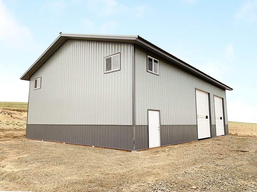 40’ x 60’ x 18’ shop featuring (2) 12’ x 14’ ranch panel overhead doors, (1) walk door, (3) 4’ x 3’ windows, (4) 4’ x 18” windows, 2’ roof overhangs, and wainscot