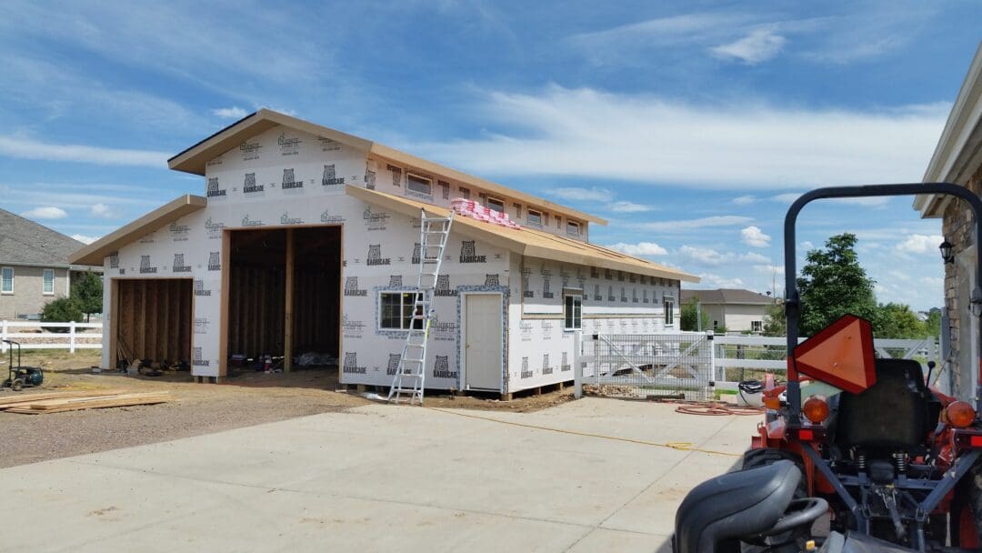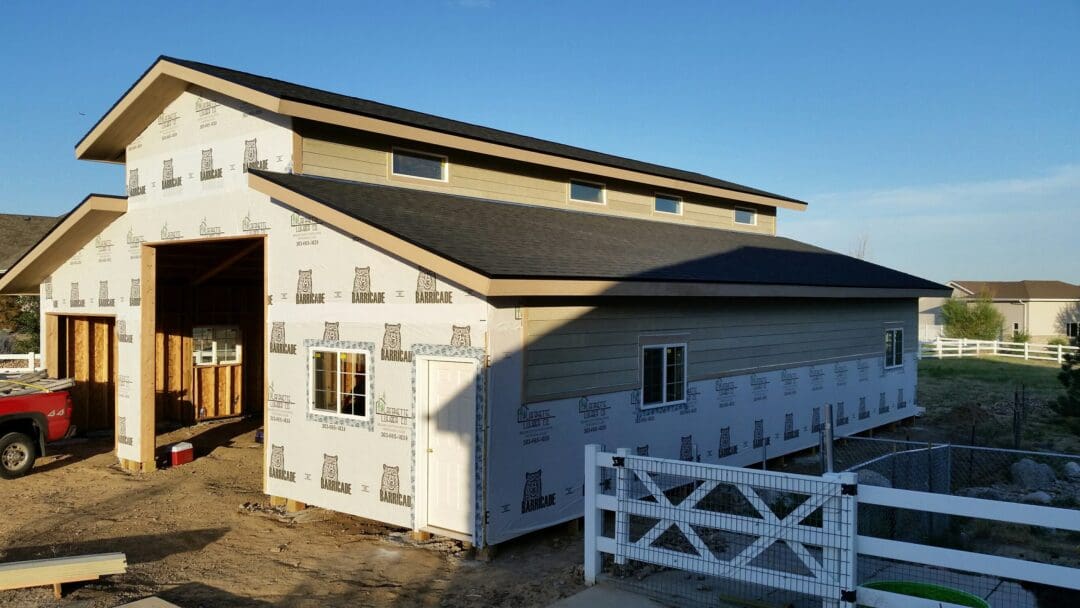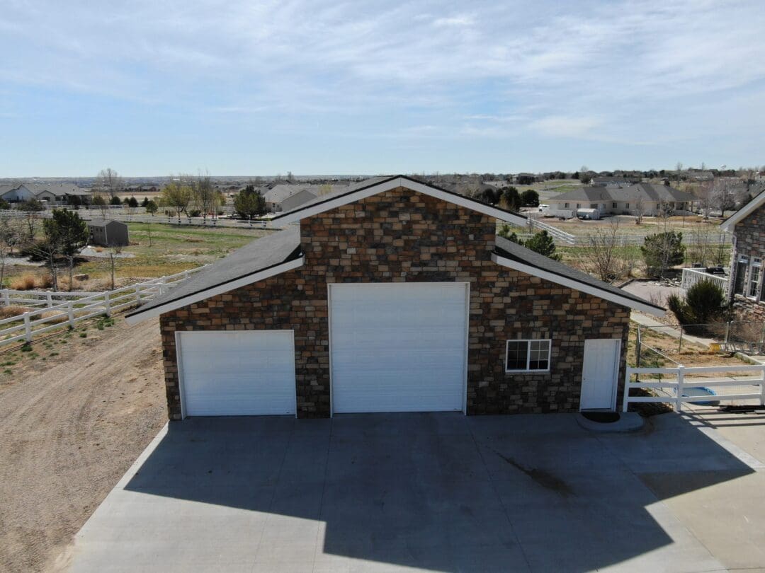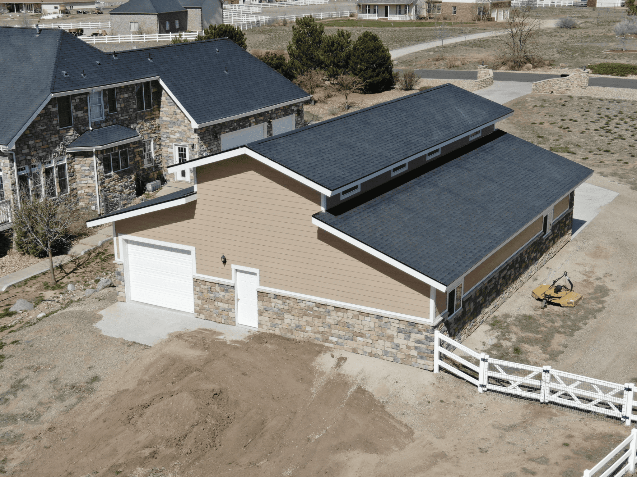 40′ x 50′ monitor style roof pole building featuring (3) overhead doors, hardy lap siding with stone accents.