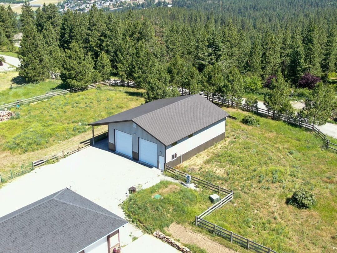 2 Door Shop with Lean-to is the perfect addition to any property. This custom garage in Post Falls Idaho features (2) 12×12 garage doors with added 12×48 open lean-to gives more options for storing your items from the elements.