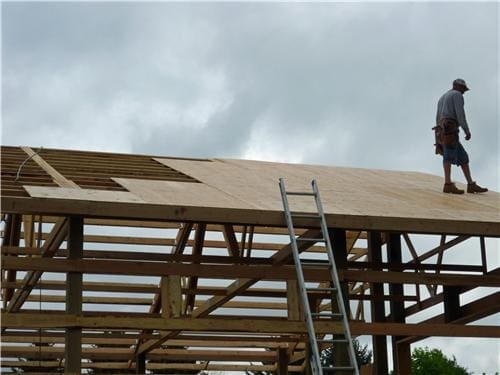 Our wood roof decking typically consists of either 7/16 OSB or ½” plywood and is applied over the top of the trusses and roof purlins to create a solid wood deck. This option is needed if composition roofing is used. It also strengthens the roof system to meet additional engineering requirements when needed.